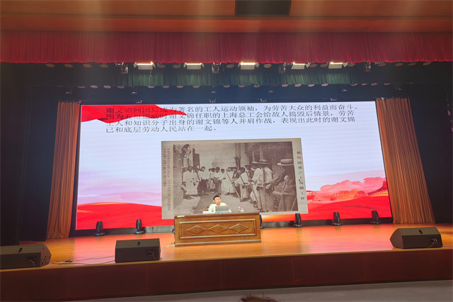 以诗为媒,以诗讲史,以红色诗词感受革命精神!雨花英烈研究会理事,中国作家协会会员胡卓然老师结合对应的历史背景,生动地给师生们讲述了邓中夏、谢文锦、朱克靖三位英雄事迹,用三位英烈的诗词深刻分析了他们为革命抛头颅洒热血所蕴含的爱国主义精神。雨花英烈无惧于牺牲个人利益和个人生命,以国家利益和民族安危为己任,这也是当代青年应该从雨花英烈的事迹里汲取的精神品质。