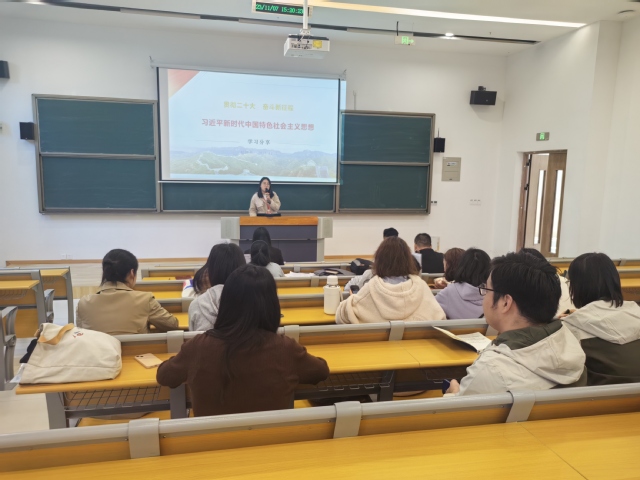 11月7日下午3:20,电子工程系党支部全体党员在勤学楼102开展“习近平新时代中国特色社会主义思想”深入学习宣讲。宣讲人为校思政中心老师赵姗姗。