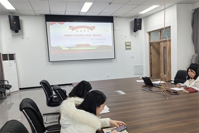为牢固树立党员干部纪律意识,进一步深化纪律建设,以铁的纪律护航乐玩体育高质量发展,2024年1月12日,电子工程系党支部组织专题学习2024年1月1日起实施的《中国共产党纪律处分条例》。本次学习由系党支部副书记陈雪主持,系部全体人员参加。