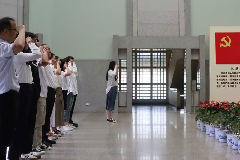 活动当天,党员们首先来到了周恩来纪念馆。徜徉在馆外,聆听着讲解员将纪念馆的历史一一道来,同志们的心情格外激动,踏入纪念馆,在周恩来总理的雕像前,大家心怀崇敬,重温了入党誓词。宣誓的过程中,党员们的脸上写满了庄重与坚定。他们眼中闪烁着对党的忠诚与热爱,声音洪亮而有力,每一字每一句都充满了对党的誓言与承诺。