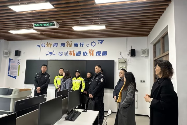 2025年1月7日,高淳区交警大队代表在队长隋中的带领下莅临电子工程系,就无人机产业发展与合作进行深入指导与交流。此次代表们的来访不仅彰显了地方政府与行业院校之间的紧密联系,也为双方未来的合作奠定了坚实基础。