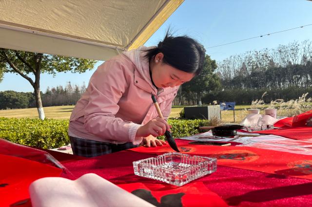 何智思同学参与了以“翰墨迎新春”为主题的书法公益活动。活动现场,红纸铺展、墨香四溢,何智思与当地书法爱好者挥毫泼墨,书写春联与“福”字,将新春祝愿化作一幅幅灵动作品。村民们纷纷驻足挑选心仪春联,现场欢声笑语不断,年味浓郁。