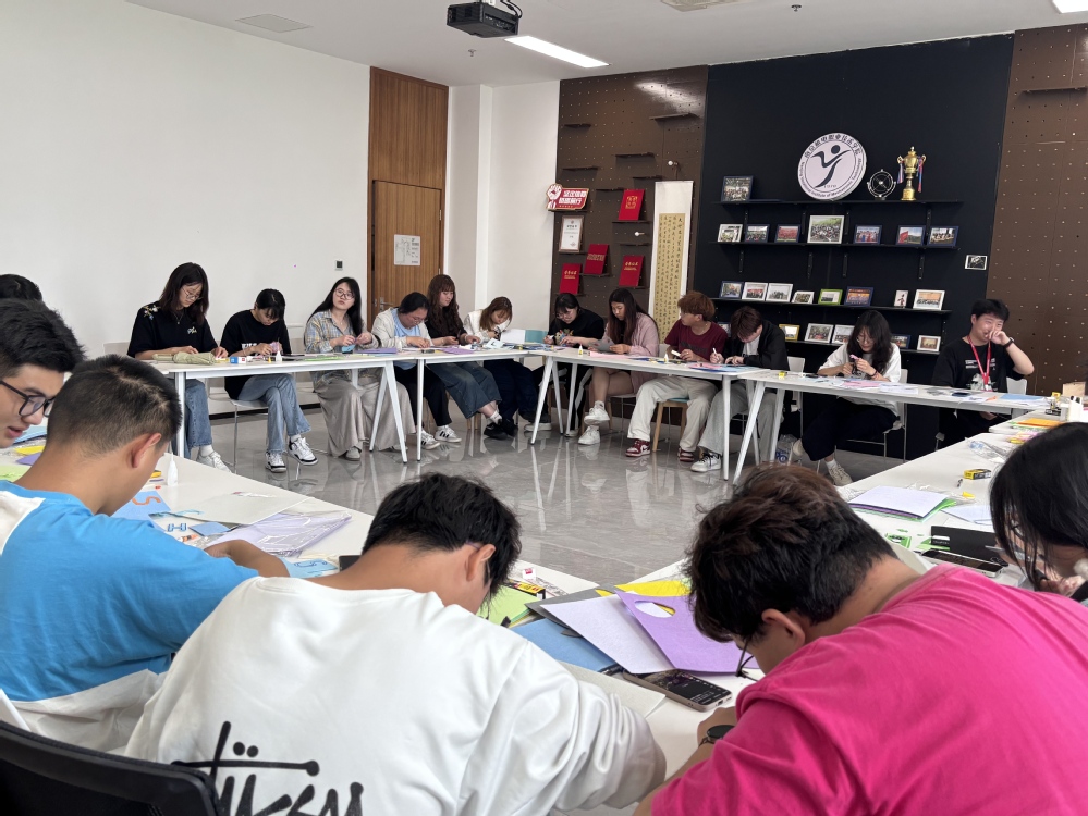 走进活动现场,温馨与创意交织,同学们围坐一堂,手中的不织布在指尖翻飞,创作灵感如泉涌,热烈的讨论声此起彼伏。心协部王晶同学化身贴心助手,帮助同学们分发材料、耐心答疑,为活动有序开展保驾护航,禹花宁老师穿梭其间,时而驻足凝视,时而轻声指导,鼓励同学们打破思维桎梏,将内心的情感与思绪倾注于作品之中,活动现场洋溢着热烈而融洽的氛围。