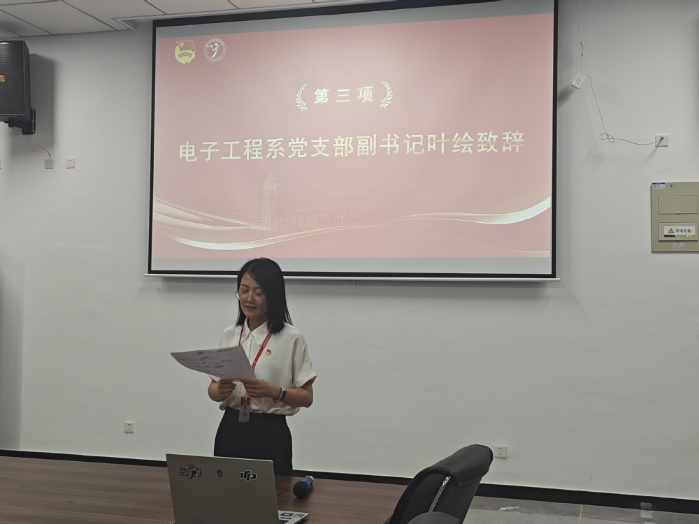 会议最后,叶绘发表致辞。她对同学们积极参与竞选的热情给予充分肯定,指出每一位站在台上的同学都展现出电子工程系学子敢担当、善思考的精神风貌。同时,她对新一届团委成员提出三点期望:一是牢记服务宗旨,始终以同学需求为导向开展工作;二是强化责任意识,在组织活动、协调事务中展现青年担当;三是注重团结协作,凝聚集体智慧打造更有影响力的品牌活动。最后,叶绘鼓励全体同学以此次竞选为契机,在未来的学习生活中继续保持奋进姿态,在共青团的舞台上发光发热。