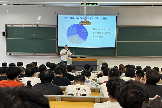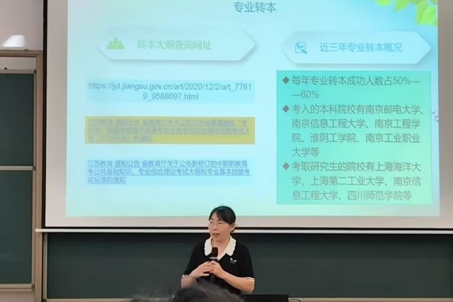 专业教师郭晓凤结合电子信息工程技术专业毕业条件,毕业生就业岗位、就业区域和专业转本情况,鼓励同学们珍惜大学时光,明确目标、勇于尝试、不怕失败。特别强调,无论是继续深造还是就业创业,扎实的专业基础、丰富的实践经验和持续的学习能力都是通往成功的关键。
