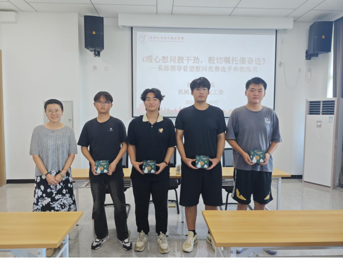 机械工程系党支部书记、关工委主任胡枫则从心理调适与团队协作角度提出殷切期望,叮嘱队员们合理分配精力、保持积极心态,同时要求教练员科学制定训练计划,做好后勤服务。系部为竞赛队员提供防蚊去暑物品,为竞赛队提供坚实的生活保障。