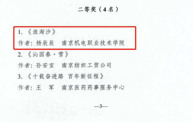 近日,南京新工投资集团有限责任公司工会发布了《关于表彰“奋进十年路 喜迎二十大”2022年南京新工投资集团职工书画摄影获奖作品的决定》(宁新工工〔2022〕31号),经专家评审,我校杨辰辰老师的作品《浪淘沙》、戴明杰老师的作品《十年奋进征程 百年千秋伟业》分别获得书法类二等奖和优秀奖。