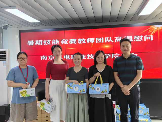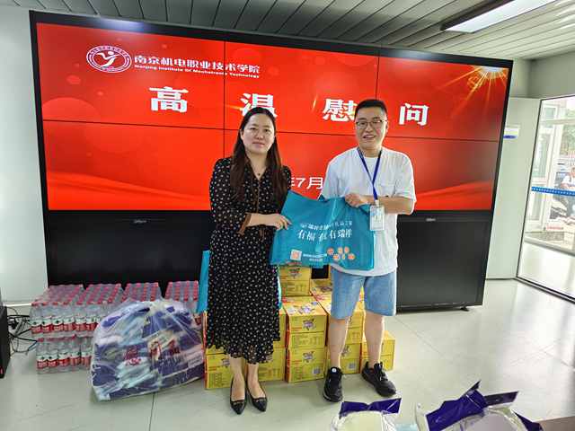 孔德丽副院长和姜振宇主席分别为暑期仍工作在一线的后勤处、财务处、建设办、招生办等部门的值守老师以及在校准备教师技能大赛的老师们送上了水果、饮料等防暑降温物品,并叮嘱他们要合理安排工作时间和劳动强度,在做好工作的同时注意防暑,劳逸结合,确保身体健康。
