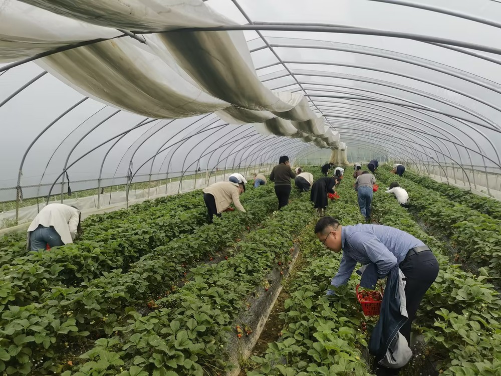 步入大棚,馥郁的果香迎面而来。棚内的草莓色泽鲜红、饱满诱人,散发出的香甜气息令人垂涎。大家手提小果篮,沿着整齐的草莓田,化身为小果农。在采摘品尝的过程中,大家相互交流心得,氛围轻松愉悦,尽情享受采摘草莓与品尝鲜果的乐趣。