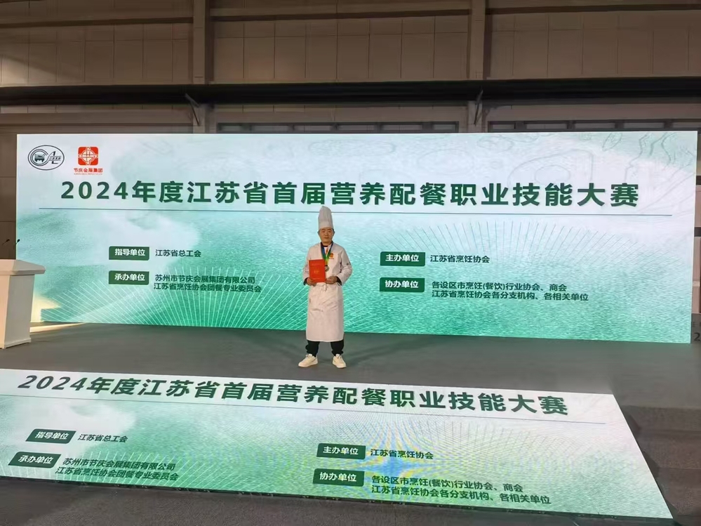 在2024年12月28日刚刚结束,由江苏省烹饪协会主办的2024年度江苏省首届营养配餐职业技能大赛中,乐玩体育一楼学生食堂厨师张发旭,凭借精湛厨艺与科学营养搭配脱颖而出,斩获学生营养餐银奖、营养套餐银奖两项大奖。