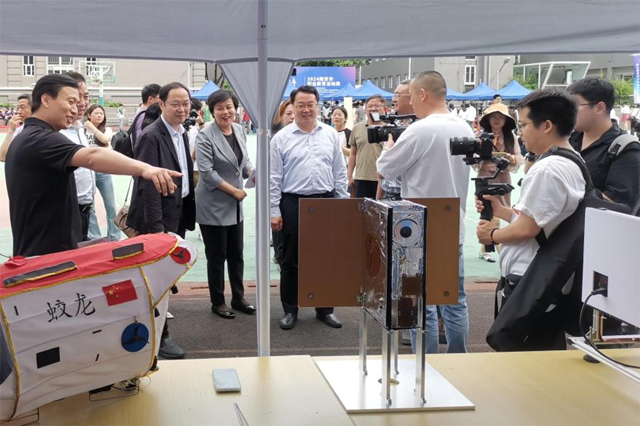启动仪式结束后,与会代表共同参观了“智改数转”职业技能教学场景展示、技能传承中华优秀传统文化展示及全市职业学校学生社团活动展演,全市20多所中高职院校,围绕活动主题搭建了各具特色的展区。乐玩体育带来了“南京号”暨中国青少年科普卫星(八一08星)地面模拟星、“蛟龙”号秦淮花灯以及众多体现了数字化设计与制造的创客作品。
