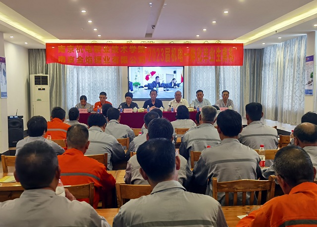 毕业典礼上,赵学洪祝贺校企合作社招班学圆满完成学业,顺利毕业。指出,面向社会人员开展全日制学历教育,是贯彻落实党中央、国务院决策部署的必然要求。学校针对与南京金焰锶业有限公司的校企合作积极开展学情分析,分类制订人才培养方案,创新教学组织形式,主动适应高职扩招后生源多样化、发展需求多元化和对教育教学的新要求,打造适应扩招新要求的教师队伍,认真组织教学工作,全面提高人才培养质量。充分肯定了南京金焰锶业的学员读的进取精神,鼓励学员坚持学习、学以致用。同时向大家提出四点希望:一、饮水思源,怀有感恩之心。二、立足岗位,勇于实践创新。三、穿针引线,促进产教融合。四、建功立业,推动企业腾飞。
