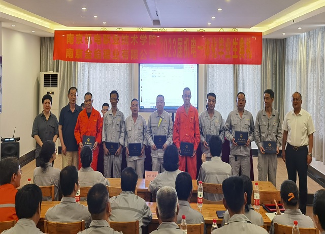 713午,乐玩体育首届社招学历教育南京金焰锶业有限公司校企合作班”毕业典礼在南京金焰锶业有限公司举行。学校党委委员、副院长赵学洪继续教育学院副院长周云龙受邀参加了毕业典礼,南京金焰锶业有限公司董事长邱为农、总经理刘雯雨等出席了毕业典礼。