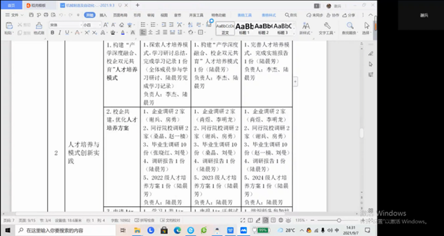 首先,陆老师总结了2021年暑假期间教研室完成的相关工作,包括“十四五”专业建设方案、2021级统招人才培养方案、2022级社招人才培养方案、微课比赛、技能竞赛、实训平台申报等;其次,教研室成员一同讨论制定了本学期教研活动计划,每位老师负责1次教研活动的选题、教研内容的准备、过程资料的收集整理、新闻稿的撰写等;最后,所有老师一起研读了“十四五”专业建设方案。