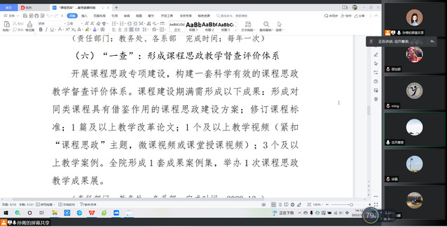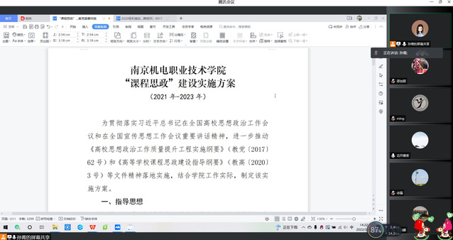 为贯彻落实习近平总书记在全国高校思想政治工作会议和在全国宣传思想工作会议重要讲话精神,进一步推动《高校思想政治工作质量提升工程实施纲要》和《高等学校课程思政建设指导纲要》等文件精神落地实施,结合学院工作实际,学院制定了《乐玩体育“课程思政”建设实施方案》。2022年3月22日下午,机械设计与制造教研室在腾讯会议线上平台对学院的文件进行了学习,并对本专业的所有课程融入思政进行了研讨,会议由专业负责人黄晓萍主持。