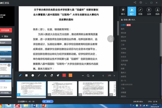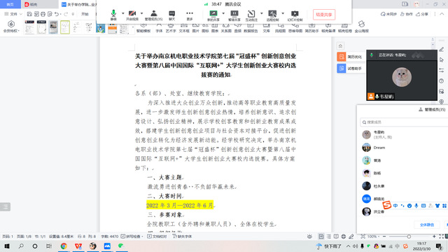 机械工程系各班级专业班主任采取线上方式(腾讯会议、超星平台)进行宣讲、解读大赛方案,本次大赛分为创新制作组、创意设计组、创业计划组。大赛时间为2022年3月—2022年6月,分为宣传报名、初赛选拔、项目辅导、决赛预演、大赛决赛等五个阶段进行。