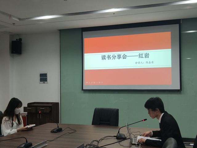 首先,由系学生会文宣部部长陈嘉豪为我们分享小说《红岩》,陈嘉豪同学以小说的书名和作者为题展开,将书中背景与现实历史相结合,把那段共产党人在黑暗中进行革命斗争的故事娓娓道来。陈嘉豪同学通过朗读书中革命人物江姐同国民党反动派斗争的节段描写和狱中“挺进诗”——《我们也有一面五星红旗》,让同学们深刻了解到什么是“红岩精神”。