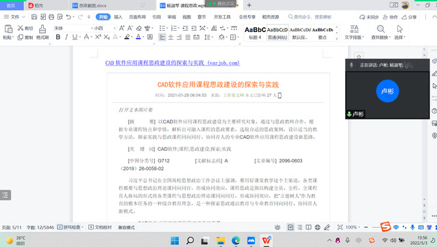 研讨会上,杨老师首先介绍了工业设计专业课程思政的融合策略,她认为课程思政在工业设计教学中具有很大的作用,通过将思政理念的注入,可以更好地将传统文化元素借助设计产品表达出来,同时在很大程度上改变了工业设计的教学,带来更加多样的工业设计教学成果。接着她从课程思政如何融入教学目标、教学内容、教学方法和手段、学生学业评价和考核机制等方面进行了详细阐述,并介绍了CAD软件应用类课程思政建设新思路。