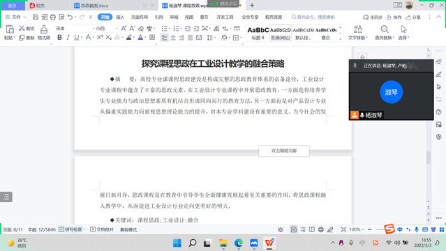 为贯彻落实《乐玩体育“课程思政”建设实施方案》,进一步推进工业设计专业课程思政教育教学改革工作,5月3日下午,工业设计教研室开展专业课程思政建设研讨会,会议由杨淑琴老师主持。