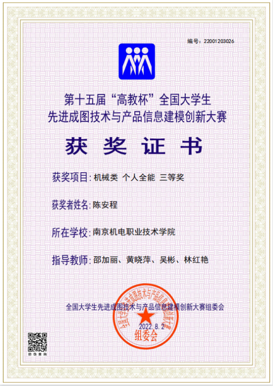 自2018年以后,机械工程系在全国大学生先进成图技术与产品信息建模创新大赛中共获得个人一等奖1项,二等奖3项,三等奖7项,团队三等奖2次,3D打印赛项三等奖4次的优异成绩。通过历次大赛锤炼,同学们的成图技术水平和专业技能逐年提升,与全国其他院校间的学习交流更加紧密,为我校师生进一步探索图学发展和创新成图方法与手段提供了一个绝佳的平台。
