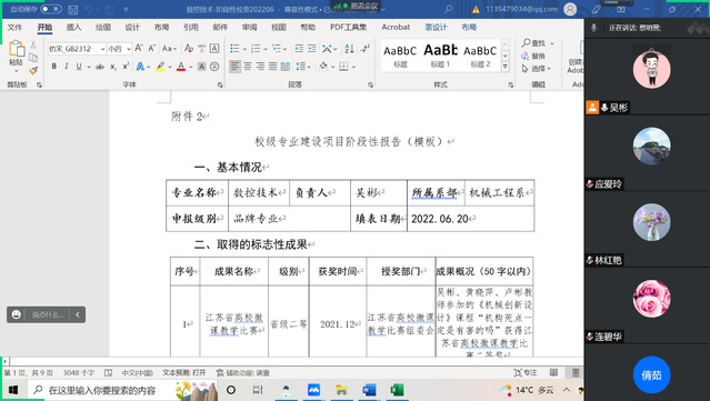 会议上,大家再次学习了的“十四五”期间,数控技术专业建设的总体目标:专业建设以省骨干“机械设计与制造专业群”为依托,在人才培养模式上,无缝对接产业行业企业,深化“产学深度融合、校企双元育人”人才培养模式,培养适应产业发展和先进制造需求的数控技术人才。会议上,吴老师对上学年专业建设取得的标志性成果、专业建设进度进行了总结分析,上学年的专业建设在专业全体教师的共同努力下,在标志性成果方面,取得了江苏省高校微课比赛二等奖一项、江苏省职业院校教学大赛三等奖一项、立项江苏省高等学校重点教材一项,入选江苏省产业教授一人等不错成绩,在专业建设进度方面,专业体系与专业群建设完成73%、人才培养与模式创新实践完成100%、专业课程与教学资源建设完成100%、教材建设与教法改革完成88%、校企合作与实践体系建设完成90%、师资队伍与服务能力完成85%,少数专业建设任务完成情况与目标存在差距,新学年专业教师将补足短板,争取更好地完成专业建设任务。