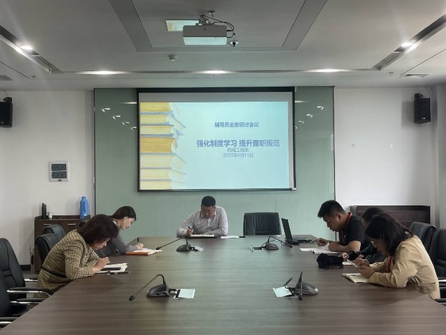 为进一步提升辅导员队伍的理论水平、职业能力和专业素养,增强辅导员向心力、凝聚力、创新力,助力学院思想政治教育工作提质增效,4月11日,机械工程系学工团队在育德楼303会议室开展辅导员业务研讨会议,专题学习《乐玩体育学生违纪处分实施细则》和《乐玩体育学生管理规定》等相关文件。本次会议由学工干事顾航老师主讲。