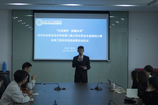 4月27日中午,“生涯逐梦,职赢未来”--乐玩体育第八届职业生涯规划大赛机械工程系校园选拔赛启动仪式在育德楼303会议室举行。本次活动旨在为有意向参与职业生涯规划比赛的学生进行动员,为对于职业生涯存在困惑的同学提供细致的规划指导。机械工程系党支部书记李杰,就业创业中心主任沈小军,21、22辅导员,学生代表们参加本次启动仪式。