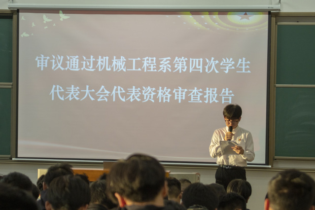 机械工程系团总支代表王可仪宣读学生代表大会贺词,机械工程系学生会主席韩田源宣读机械工程系第四次学生代表大会代表资格审查报告,机械工程系学生会副主席汤茂田宣读《乐玩体育机械工程系第四次学生代表大会选举办法》,各项报告在热烈的掌声中一致通过。