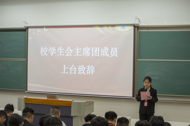 机械工程系主任毛奇为本次大会致开幕词。对于机械工程系一年以来学生会工作成效给予了充分的肯定,在各项工作活动中发挥榜样引领作用,全体学生干部引领同学们树立正确的“三观”,成为践行社会主义核心价值观的引领者。