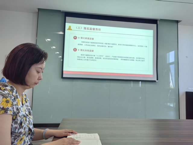 2023年6月27日,机械工程系全体党员在育德楼303集中学习《乐玩体育关于加强党员干部“八小时外”监督管理实施办法(试行)》,党支部副书记李杰领读学习该文件精神。