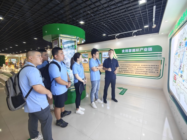 在睢宁县官山镇,实践团师生参观了食用菌产业链、秸秆存储中心、奶牛养殖基地等“一链两园一基地”生态循环农业产业集群,实地调研当地生态循环农业发展状况。孢菇房里,标准化的菇床层层叠叠,工作人员正在加紧采摘、分拣、打包、发货。奶牛养殖基地里,装满原料奶的冷链奶罐车即将运往上海光明乳业工厂。这里的生态农业给师生们留下了深刻的印象。
