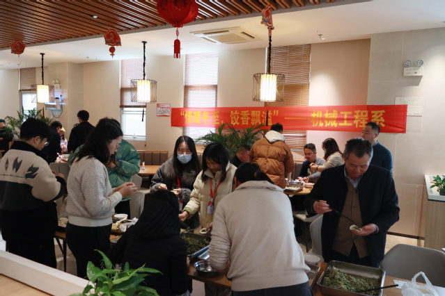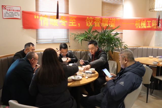 岁末将至,敬颂冬绥。为进一步弘扬中华优秀传统文化,激发学生对传统节日的热爱,提高民族自尊心、自信心和自豪感。12月12日上午,机械工程系分工会在食堂三楼举办“情暖冬至,饺香飘溢”冬至活动,支部全体师生参加活动。