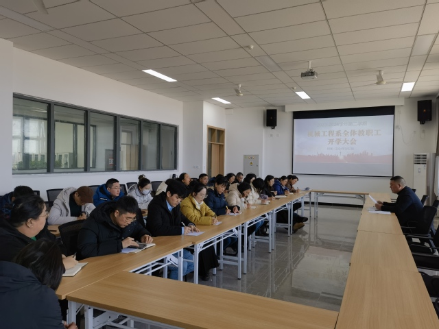 伴随着祥龙迎春的脚步,满载憧憬与希望的新学期如期而至。为科学谋划新学期发展方向,确保各项工作有序开展。3月3日中午1点,机械工程系在笃行楼401会议室召开了2023-2024学年第二学期全体教职工大会,会议由机械工程系党支部副书记李杰主持,全体教职工参加会议。