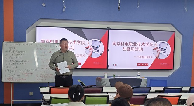 为持续推进学校高质量发展,培养适应新质生产力需求的创新型技术技能人才,落实好第九届“知链杯”创新创意创业大赛暨第十届中国国际“互联网+”大学生创新创业大赛校内选拔赛要求,以学校2024年“创客周”活动为契机,2024年4月23日,机械工程系全体教师以“匠心传承,创赢未来”为主题的“创客周”活动在思学楼410智慧教室顺利开展。机械工程系党支部副书记李杰主持,系部全体教职工参加活动。