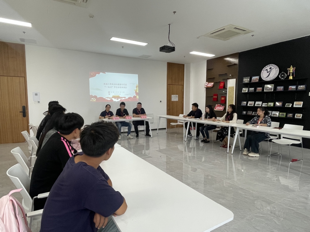 14:30分,系部主任毛奇、党支部副书记李杰、副主任黄晓萍与5位新生辅导员前往星梦馆二楼209会议室与7名2024级新生代表见面,召开机械工程系2024级新生代表“一站式”学生社区座谈会,领导老师们与新生代表们进行密切交流,询问大家对于学校的印象、对于任课教师的评价以及自己大学生涯的规划,解答他们在开学初期关于学习、食宿以及交通上的种种问题,同时给每位同学提供了与自身目标相对应的指导建议,新生代表纷纷表示会努力朝着目标前进,在班级乃至系部中做好表率。