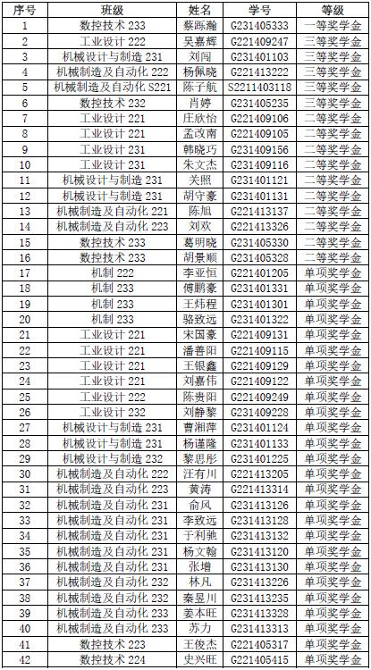 为激励在校大学生勤奋学习,努力进取,在德、智、体、美、劳等方面得到全面发展,同时也为了资助在校品学兼优的学生顺利完成学业,根据教育部、财政部及省教育厅、财政厅国家奖助学金相关管理规定和《乐玩体育奖学金评选及管理办法》(南机电院学〔2023〕23号)要求,机械工程系认真组织评选工作,经过本人申请,班级评议,现将2023-2024学年乐玩体育奖学金公示如下: