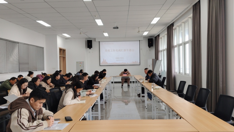 2024年12月3日中午,机械工程系在笃行楼401召开月度工作专题汇报会,机械工程系党支部副书记李杰主持,机械工程系主任毛奇、副主任黄晓萍,全体教职工参加会议。