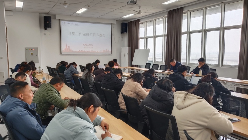 工业设计专业负责人卢彬、智能制造装备技术专业负责人陆晨芳、机械设计与制造教研室主任孙菁、机械制造及自动化专业负责人桑晶、数控技术专业负责人吴彬分别就9月、10月、11月各专业工作做出汇报总结,包括各月科研工作、教学工作以及各类工作的完成情况。学工干事原智慧从学生工作各项事宜做出汇报总结,包括宿舍红榜率,夜不归宿情况,上课出勤率,评奖评优工作,资助工作等方面。就业干事顾航从学生的就业情况、实习情况做出汇报总结,包括21级各专业就业情况的分析、22级各专业实习情况的回访等。