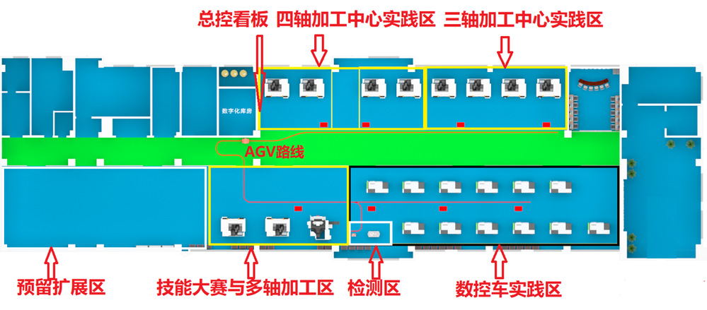 目前,数控加工中心实践教学基地已完成12台数控车床建设,接下来数控加工中心实践教学基地也将按计划稳步推进,预计2025年完成4台三轴加工中心、4台四轴加工中心及部分设备全流程数字化应用建设。