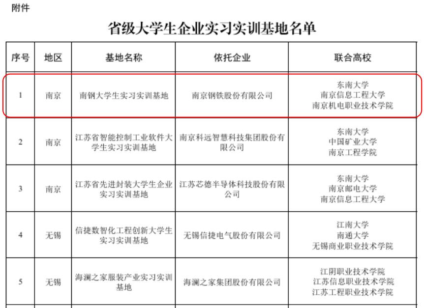 2025年6月7日,江苏省教育厅、江苏省工业和信息化厅公布了省级大学生企业实习实训基地名单。我校机械工程系联合东南大学、南京信息工程大学与南京钢铁股份有限公司成功获批“南钢大学生实习实训基地”。这一成果的取得,标志着我校在推进产教融合、深化校企合作的道路上迈出了坚实且意义重大的一步。