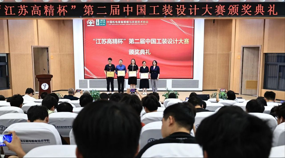 6月13日,由中国机电装备维修与改造技术协会主办的“江苏高精杯”第二届中国工装设计大赛颁奖典礼在我院隆重举行。本次大赛以“选拔人才、培养传承、专注创新、赋能制造”为主题,吸引大专院校、职业院校及行业企业的热烈响应,累计收到学生组作品 290 项、职工组作品 108 项,涵盖智能工装设计、数字化产线优化等前沿领域。