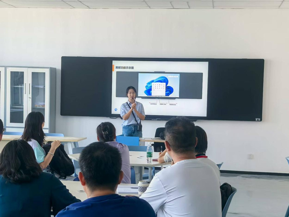 活动中,教研室的陆晨芳老师主动邀请智慧黑板厂家工程师,为全体教师开展设备使用培训。培训过程中,教师们结合教学实际积极提问,针对智慧黑板的操作技巧、功能应用等提出疑问,工程师逐一耐心解答,助力教师快速掌握新设备使用方法,为后续教学开展扫清设备操作障碍。