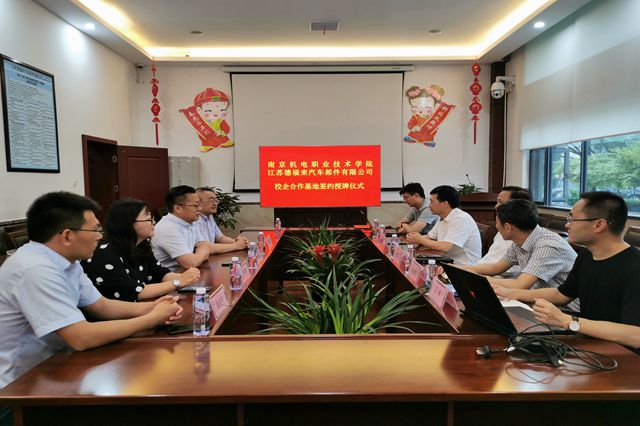 随后,学院一行5人在泰兴市高新技术开发区管委会副主任邱明波的带领下分别前往苏德福来汽车部件有限公司、江苏佳佩环保机械设备有限公司进行校企合作专题对接活动。学院领导与企业领导就人才培养、项目合作等校企合作事宜进行了深入的交流,初步达成合作意向。学院分别与两家公司签订《就业创业实习实践基地建设协议》,并向两家公司授予“乐玩体育大学生就业创业实习实训基地”铜牌。