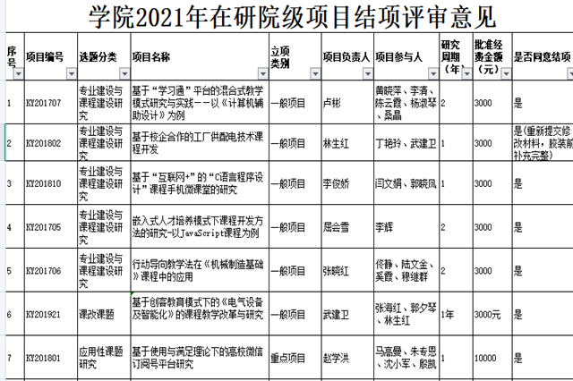 根据《关于2021年上半年院级在研科研项目结项的通知》、《乐玩体育科研工作管理办法》机电学院[2012]19号、《乐玩体育科研项目管理办法》机电学院[2012]20号文件精神,经科研及校企合作处审查,院专家组评审,批准我院2021年上半年学院在研科研项目26项通过结项鉴定。现将结项鉴定结果予以公示。