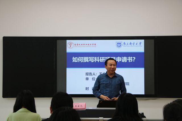 2021年5月11日,为提升学校教师撰写科研项目申报书的能力,学校邀请南京邮电大学王金元副教授做科研课题项目申报专题讲座,科研及校企合作处李木香及学校教师代表一起聆听了讲座。