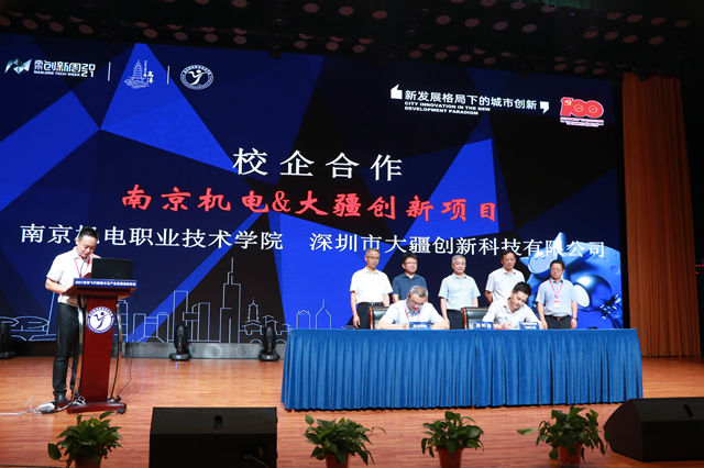 开幕式上省科协二级巡视员、学会部部长李政,南京市教育局副局长潘东标,高淳区委常委、宣传部部长、统战部部长李晓斌,市科协党组成员、副主席顾元刚发表讲话。李政部长代表省科协对论坛在高淳召开表示热烈的祝贺,并指出习近平总书记对神舟十二号宇航员的关心给我们航天爱好者很大鼓舞。潘东标副局长对南京机电学院组建“航天卫星载荷研制班”及“航天遥感技术工程师联合培养班”,成立“王曙群航天空间机构装配大国工匠工作站”,取得的良好成效表示肯定。李晓斌部长希望高淳愿秉承科技创新共同体的理念,与来自全国、乃至全球各地的专家学者、企业家一道,在危机中育新机、于变局中开新局,共同演绎科技创新的时代交响,携手开创高淳繁荣发展的美好明天。顾元刚副主席提出未来会发展以创新为主要引领和支撑的现代化经济体系和高质量发展模式,为广大科技工作者提供了贡献才智的广阔空间,为广大科技企业提供发展的新沃土。南京高等职业教育创新创业园管委会主任孔桂红女士对南京高职园进行了推介,国际慢城党工委委员、投资促进部部长汪春荣先生高淳区通航产业园进行了推介。会上还举行了签约仪式,签订了南京传媒学院高淳区校地合作项目和南京机电&大疆创新校企合作项目。乐玩体育未来将与深圳大疆创新公司共同致力打造航空航天特色示范校,共同培养无人飞行器领域专业技术人才。