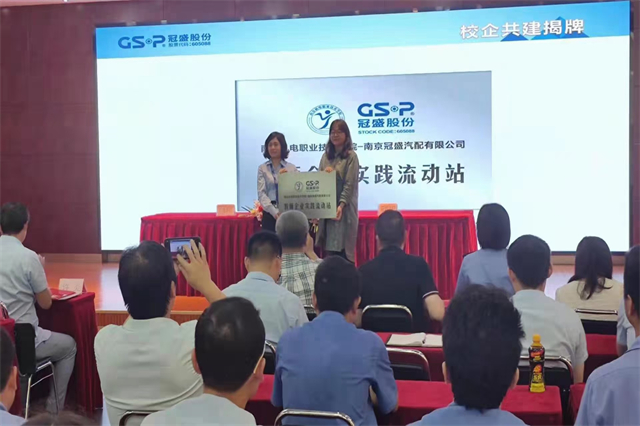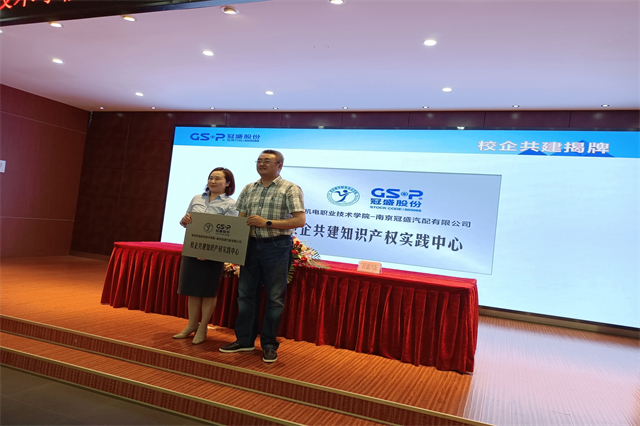 科研及校企合作处处长李木香代表学院与冠盛公司签订《校企共建知识产权战略合作协议》,学院副院长刁爱军、机械工程系主任佟静分别代表学院与冠盛公司进行了“校企共建知识产权实践中心”和“教师企业实践流动站”授牌仪式。