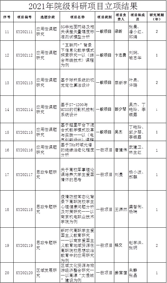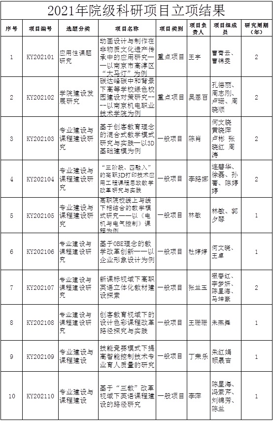 根据《关于申报2021年乐玩体育院级科研项目的通知》《乐玩体育科研工作管理办法》机电学院[2012]19号、《乐玩体育科研项目管理办法》机电学院[2012]20号文件精神,经科研及校企合作处审核、专家组评议、学院批准,现决定对20项申报项目给予立项,其中重点项目2项、一般项目18项。其中《动画设计与制作在非物质文化遗产传承中的应用研究——以南京市高淳区“大马灯”为例》等2项为院级重点项目,《基于创客教育理念的混合式教学模式研究与实践—以3D基础建模为例》等18项为院级一般项目。