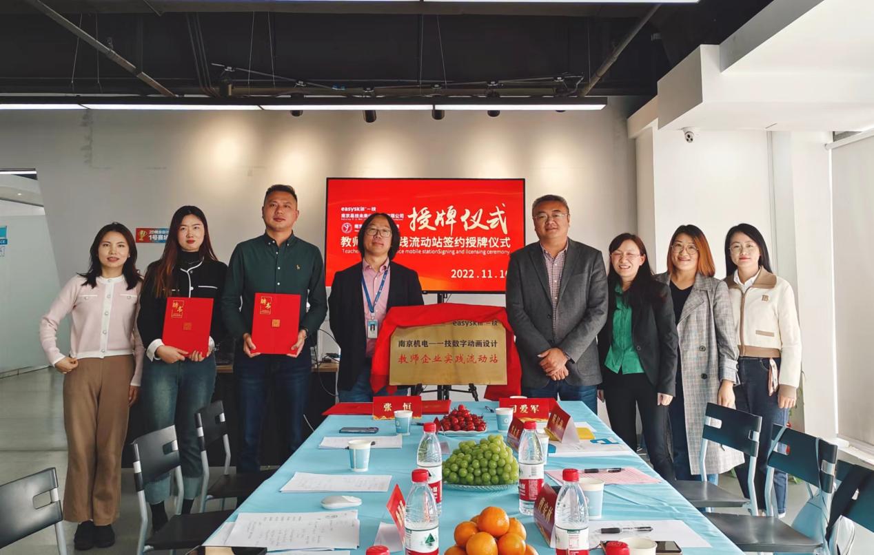 为全面促进校企交流合作,着力打造校企共建、产教融合平台,2022年11月10日,乐玩体育赴南京易技未来动画制作有限公司举行“南京机电-一技数字动画设计教师企业实践流动站”签约揭牌仪式。我院党委委员、副院长刁爱军、科研与校企合作处处长李木香、人文社科系系主任曹安林、人文社科系系部书记叶绘及数字媒体技术专业相关教师与南京易技未来动画制作有限公司董事长张恒、总经理王群及流动站企业联络人徐倩倩共同见证了这一重要时刻。
