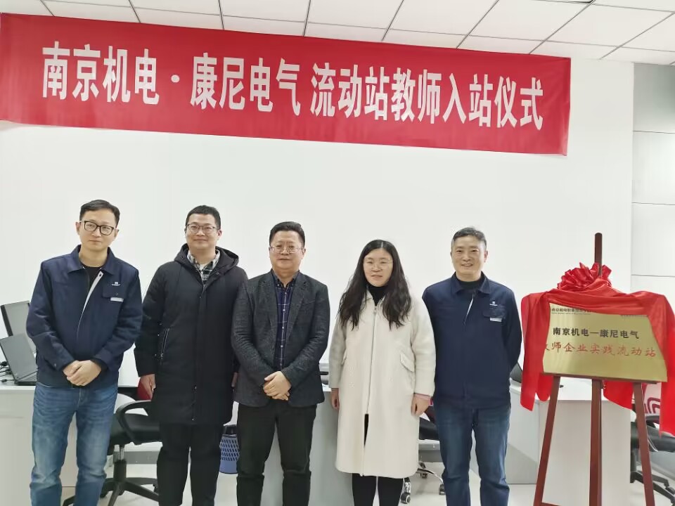 2022年12月15日,学院首批认定的教师企业实践流动站之“南京机电--康尼电气教师企业实践流动站”正式签约揭牌。南京康尼电气技术有限公司总经理马涛、市场部部长李向阳、技术总监刘蔚钊、技术副部长张中辉、综合部负责人侯露,学校党委书记、院长周庆礼,党委委员、副院长刁爱军,科研及校企合作处处长李木香,自动化工程系主任潘理平、党支部书记高水冕及流动站负责人李银露教师等参加了本次签约授牌仪式。周书记亲自送首批教师入站。